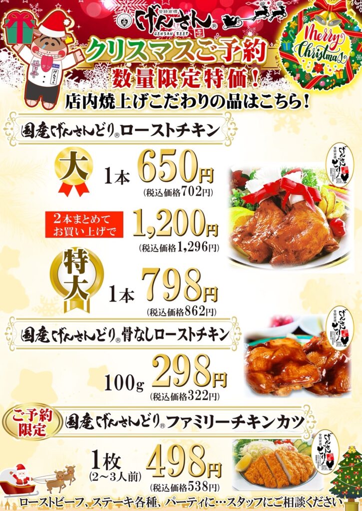 クリスマスチキンのご予約もまだまだ受け付けておりますのでこちらも併せてよろしくお願いいたします🎅
